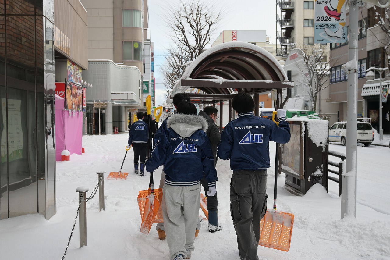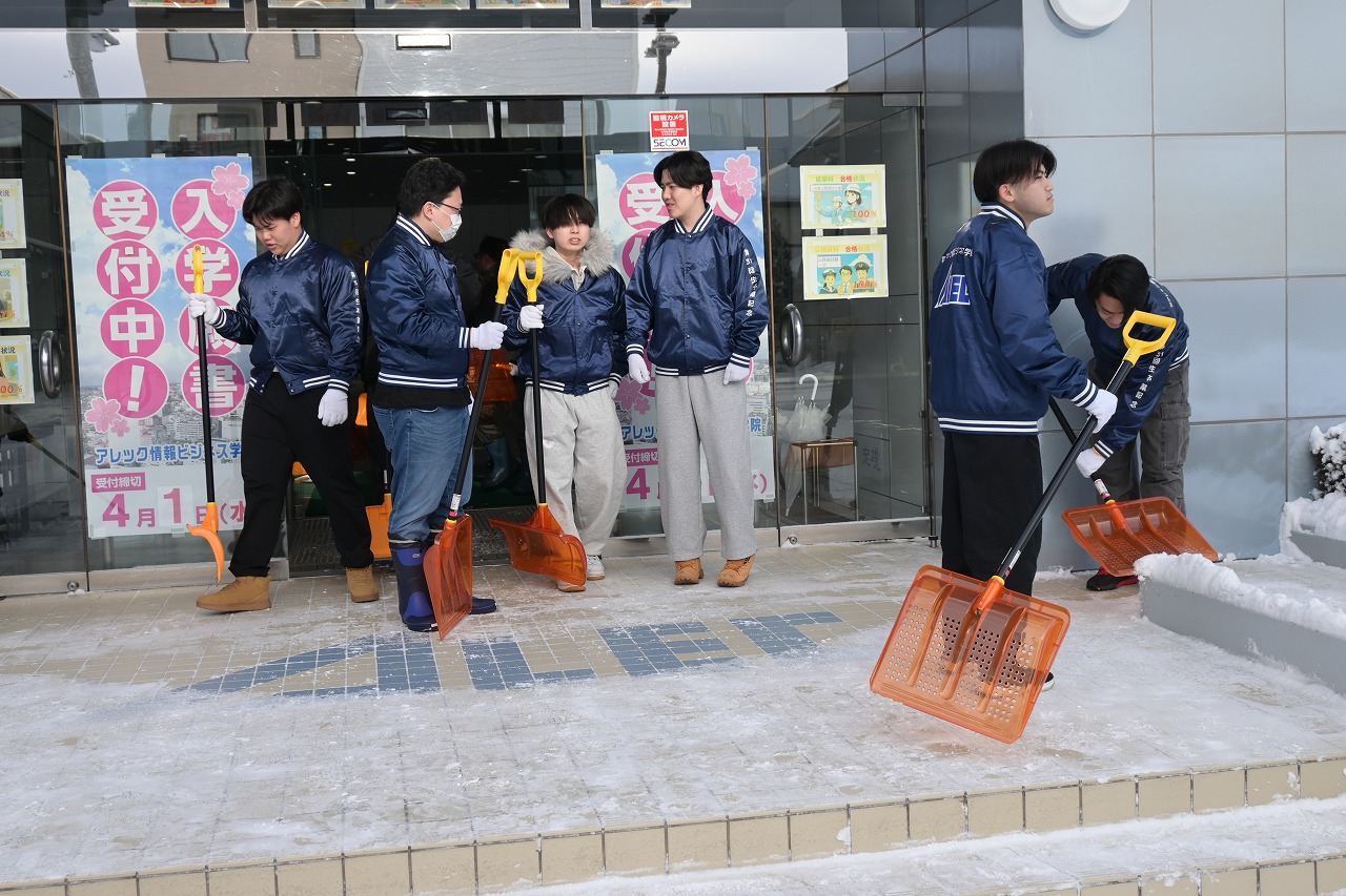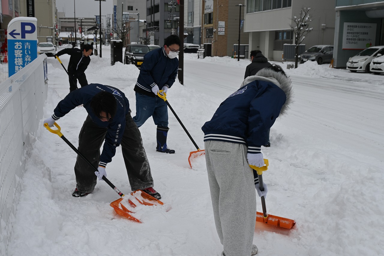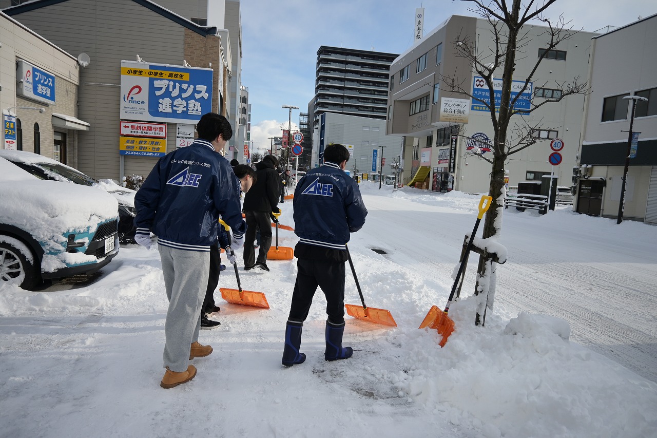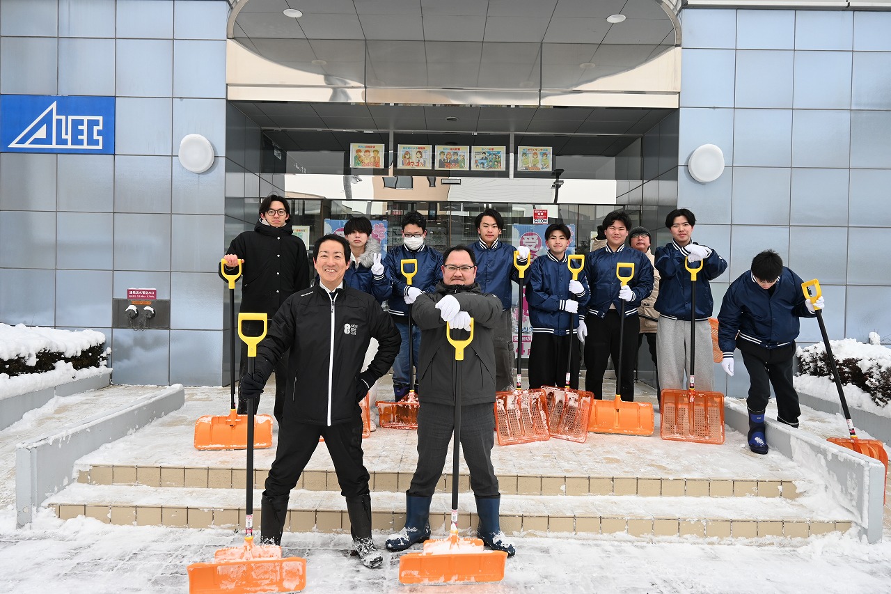 本日は雪が多くつもったので、雪かきに出動しました。